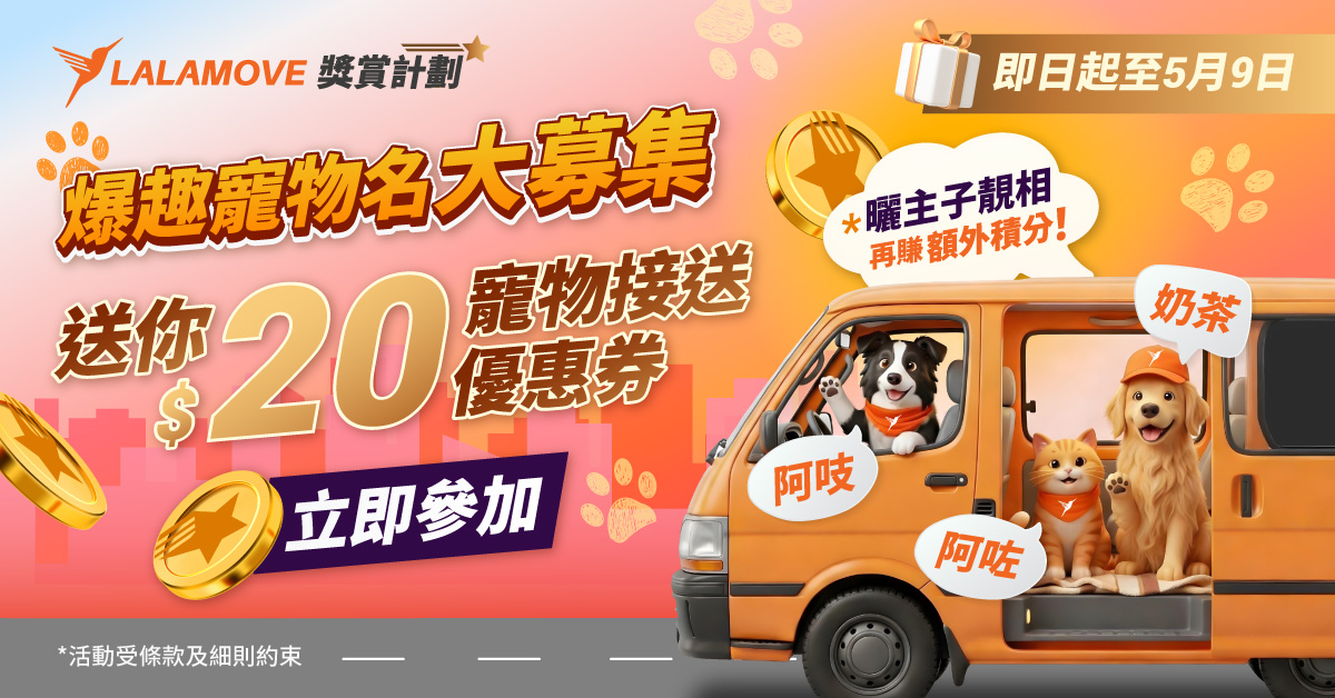 Lalamove現正募集全港最搞笑、最無厘頭嘅寵物名🐾